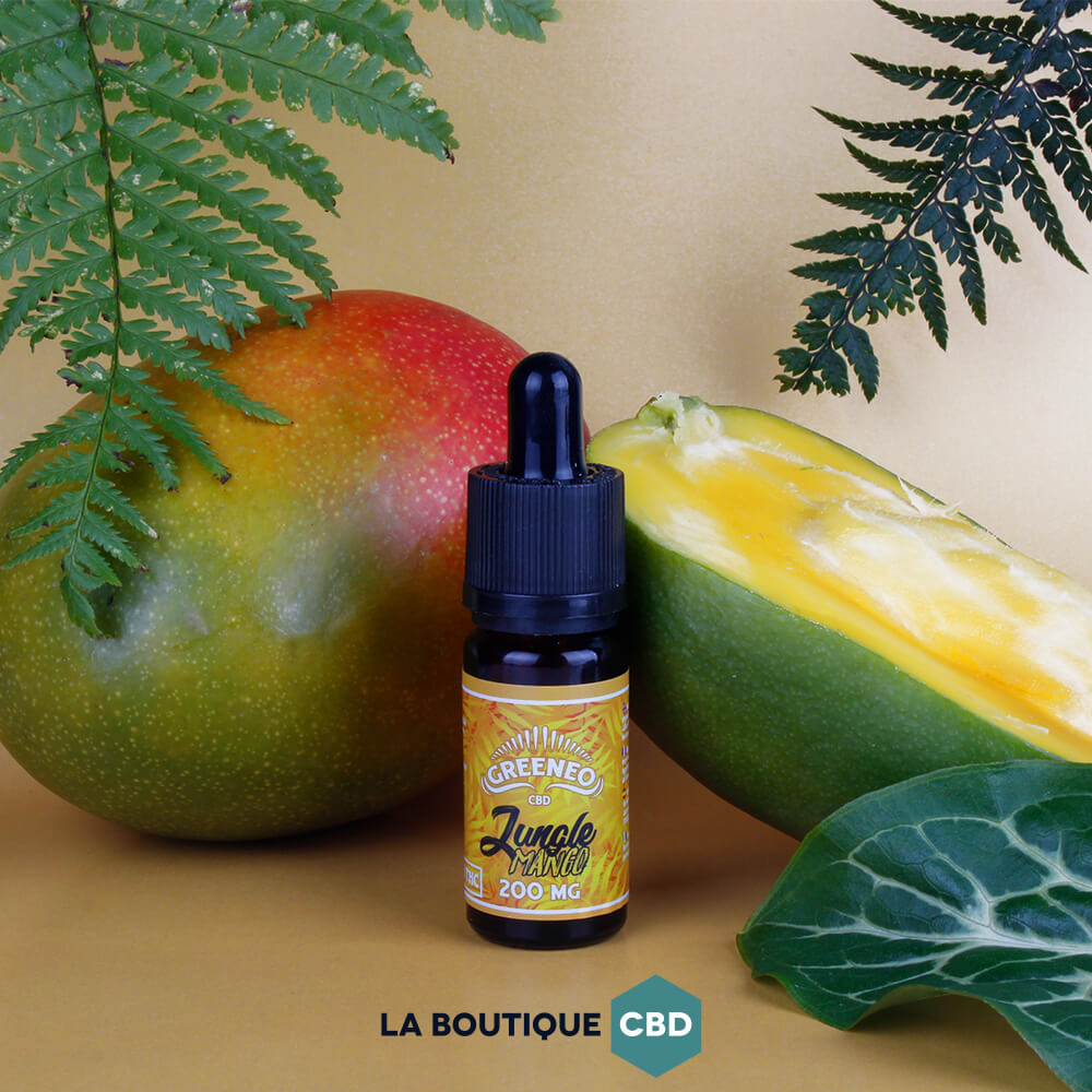 Un e-liquide aromatisé à la mangue, relevé par des terpènes fruités. Ce produit fait partie de la gamme Jungle de Greeneo, qui mêle les saveurs sucrées des fruits au caractère intense de terpènes naturels de chanvre.